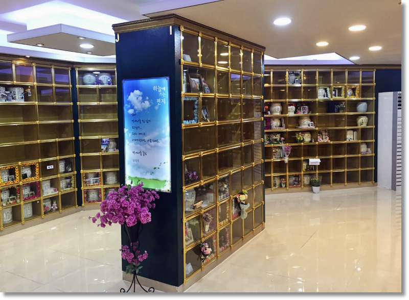 건물 내부에 안치 공간이 마련되어 있어 비나 눈이 오는 날씨나 춥거나 더운 기온을 보일 때도 부담없이 찾아 만날 수 있으며 그리움을 느낄 때면 언제든지 오갑니다.화장한 뼈분을 유골함에 봉안하게 되는데 온도와 습도의 변화폭이 크면 유골함이나 유골함에도 영향을 줄 수 있고 내부 습도, 온도는 변동이 없도록 냉난방 시스템이 가동되어 쾌적함 속에서 만나게 됩니다.