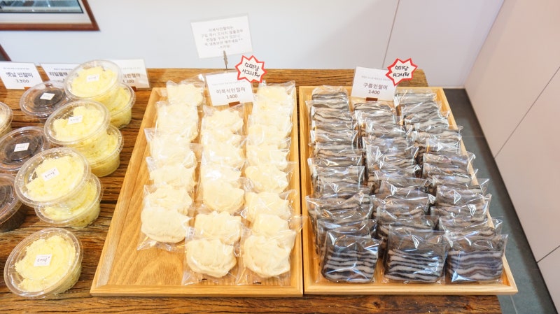 가게가 제가 생각했던 것보다 안에서 먹을 수 있도록 테이블도 있었어요!카페+떡집 느낌이었어요