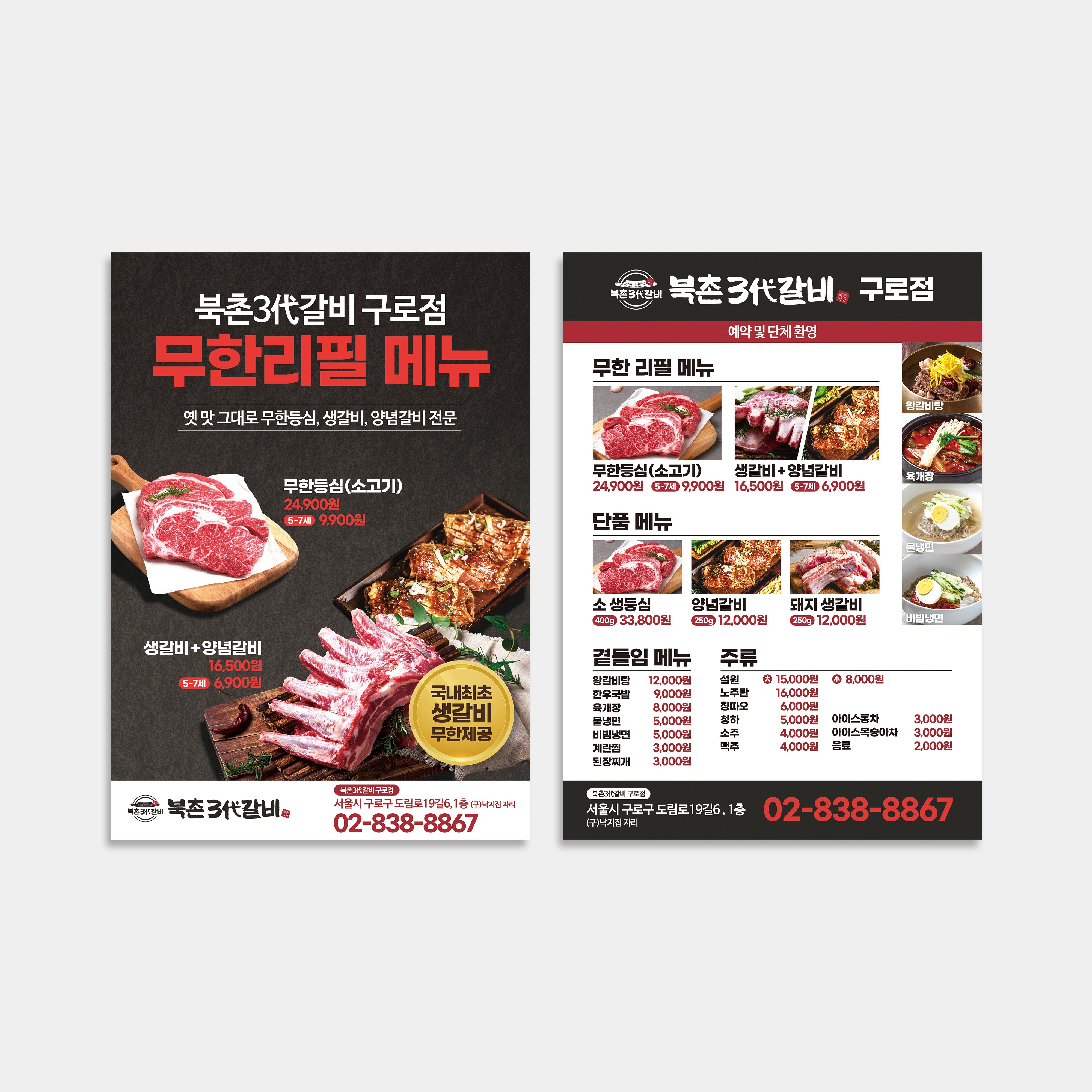 안녕하세요 디자인 몸비맨입니다^^이번에 소개드릴 제품은 #음식점 전단지 제품 2종입니다.음식점에서는 평소 명함, 빌지(주문용지), 배너, 자석전단지 등을 제작하고 있습니다 오픈시나 N주년 행사때 주로 이 전단지로 크게 제작하여 홍보하는 편입니다^^위 제품은 #닭고기 특부위 전문점 전단지입니다~ 저도 닭요리를 아주 좋아합니다.닭가슴살 연골고기 목살 등 평소 접하지 못했던 부위를 전문적으로 판매하고 있어요~ 홀소개를 위한 전단지로 약도를 간단하게 넣었네요! (추천) 오른쪽 구석에는 전단지를 가져오면 서비스를 제공한다는 내용의 이벤트도 함께 넣어 제작했습니다 오픈전단지는 이렇게 모서리 쿠폰을 제작하거나 전단지를 가져오면 서비스가 가능하다는 내용을 담아 제작하기도 합니다~