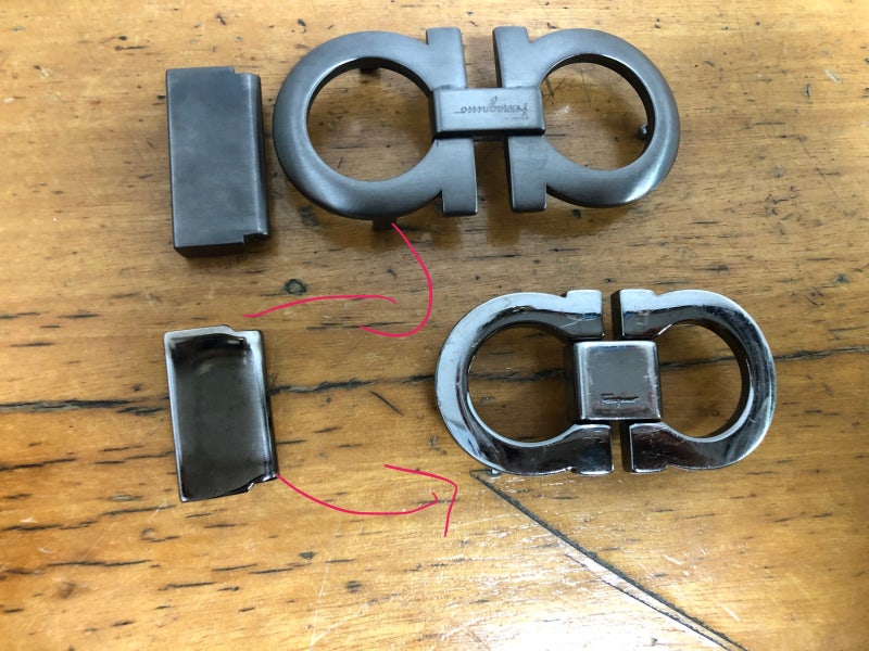 페라가모벨트버클수리집뒷면을파악해보시면버클끝이부러져있습니다 저상태로는벨트사용이불가능할것같은데다음문제의사진도보시기바랍니다